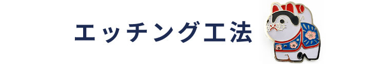 エッチング(etching)とは、化学反応によって人工的に金属を腐食させて凸凹を作る版面加工の技法で、腐食銅版画に利用されていることで知られています。その技法を利用して金属プレートにデザインを施してピンバッジを製作する方法がエッチング工法です。