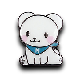 日産化学株式会社様は、化学品の製造・販売を通じて、社会が求める価値を提供し、地球環境の保護や人類の発展に貢献することを企業理念に掲げています。「未来のための、はじめてをつくる。」というコーポレートスローガンのもと、技術と製品による社会貢献を目指し、常に新しい分野へ挑戦し続けている企業様です。今回ご製作いただいたのは、社内報で活躍するキャラクターをモチーフとしたピンバッジ、「ヘキサゴン鳥」「ポーラ君(くま)」「ポラちゃん(りす)」の3種です。